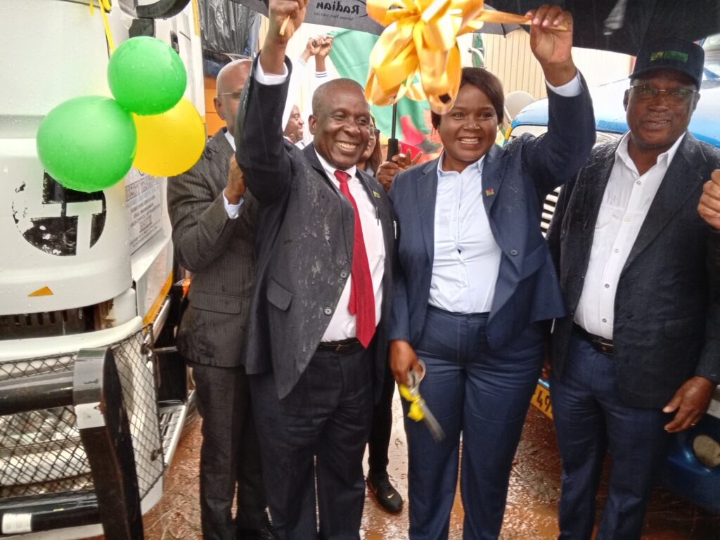 Today, the Malawi Government through the National Food Reserve Agency NFRA officially commenced the transportation of maize from Zambia under an agreement to procure 200,000 metric tonnes. The first consignment of 103,000 metric tonnes is now on the move, with trucks beginning their journey today in the presence of Malawi’s Minister of Agriculture Hon. Roza Mbilizi and Zambia’s Minister of Agriculture Hon. Reuben Mtolo Phiri.